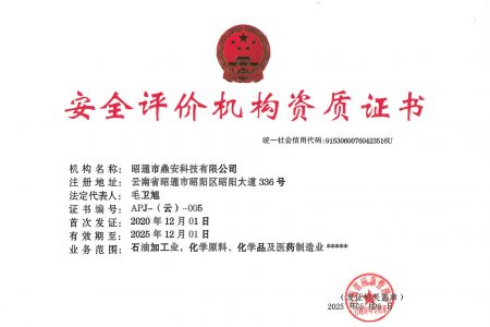 2003年11月10日,昭通市鼎安科技有限公司成立,初始主要從事第三方安全工程技術(shù)服務(wù),經(jīng)多年運(yùn)營,發(fā)展為多專業(yè)綜合科技平臺,為社會提供多種專業(yè)技術(shù)服務(wù)工作。 現(xiàn)公司注冊資金為1200萬元,公司法定代表人:毛衛(wèi)旭。公司主要業(yè)務(wù):安全評價、安全標(biāo)準(zhǔn)化評審、安全工程技術(shù)服務(wù);環(huán)境監(jiān)測、職業(yè)衛(wèi)生檢測、檢驗(yàn);法律訴訟及非訴訟服務(wù);司法鑒定、固定資產(chǎn)投資項目節(jié)能服務(wù);工程咨詢;工程測量測繪;安全教育培訓(xùn)等。是安全生產(chǎn)服務(wù)、安全教育培訓(xùn)機(jī)構(gòu),也是環(huán)境監(jiān)測和職業(yè)衛(wèi)生服務(wù)機(jī)構(gòu),同時也是綜合的檢測檢驗(yàn)、綜合科技平臺服務(wù)機(jī)構(gòu)。多年來為公、檢、法、司、軍、警、海關(guān)、仲裁、安監(jiān)、工礦商貿(mào)企業(yè)、社會團(tuán)體及個人提供多專業(yè)技術(shù)服務(wù)。